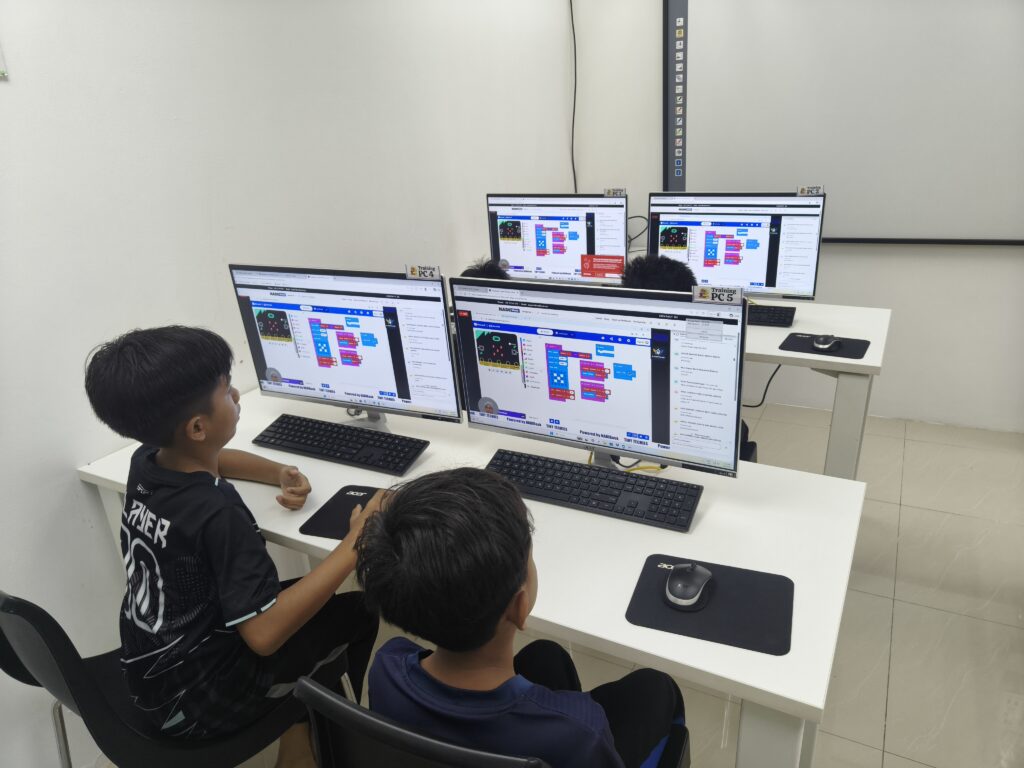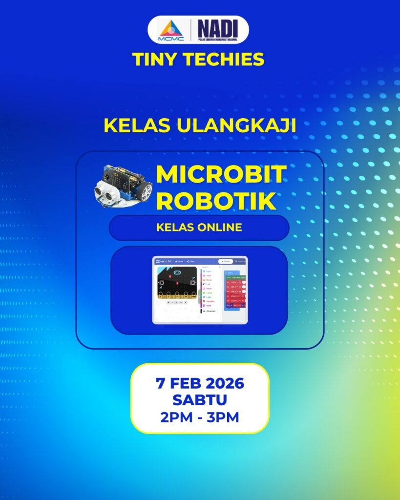 Program Tiny Techies: Kelas Ulangkaji Microbit Robotik, peserta berpeluang mengulang kaji konsep asas Microbit, memahami fungsi komponen robotik, serta mempraktikkan kemahiran pengkodan secara interaktif.
