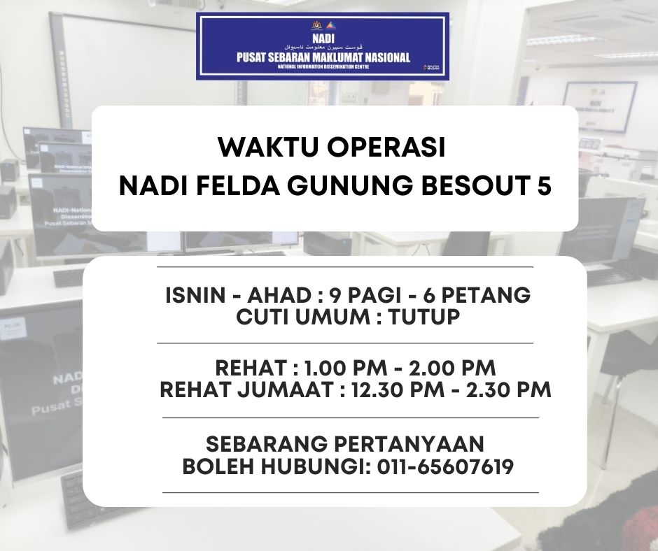 Berikut adalah waktu operasi NADI Felda Gunung Besout 5