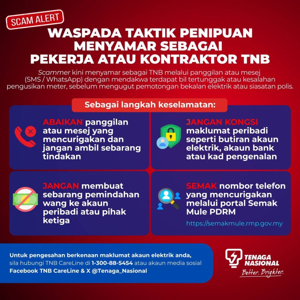 📌 Ketahui lanjut taktik dan tip pencegahan penipuan di https://www.tnb.com.my/scam-alert